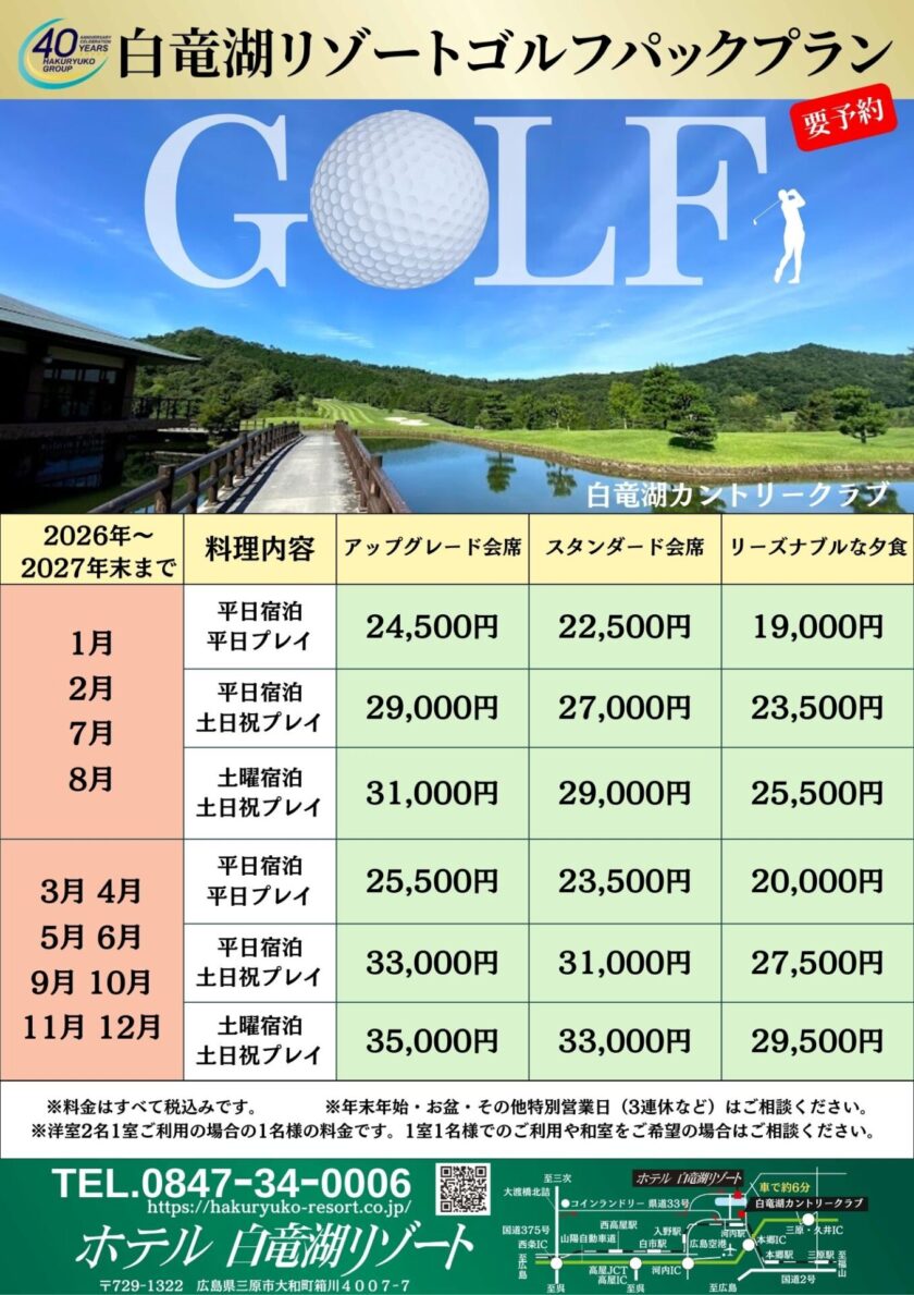 当ホテルから車で10分弱のところにある白竜湖カントリークラブさん。